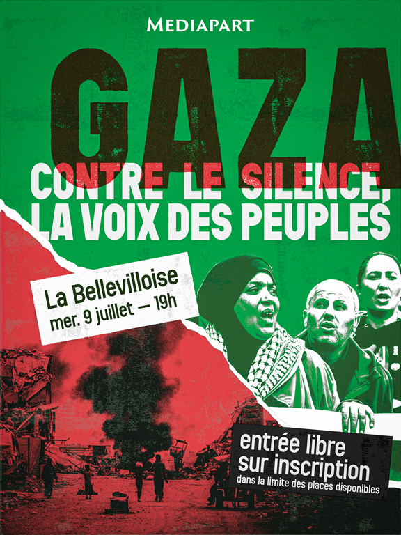 Chaque jour depuis des mois, Mediapart, par ses informations, décrit les logiques funestes à l’œuvre, nomme les fautifs et donne la parole aux victimes silenciées. Nous vous donnons rendez-vous le 9 juillet, de 19 heures à 22 heures, à la Bellevilloise, à Paris, pour regarder la catastrophe en face et imaginer les moyens de l’arrêter. Avec des Gazaoui·es, et des acteurs et actrices de la société civile mobilisée.