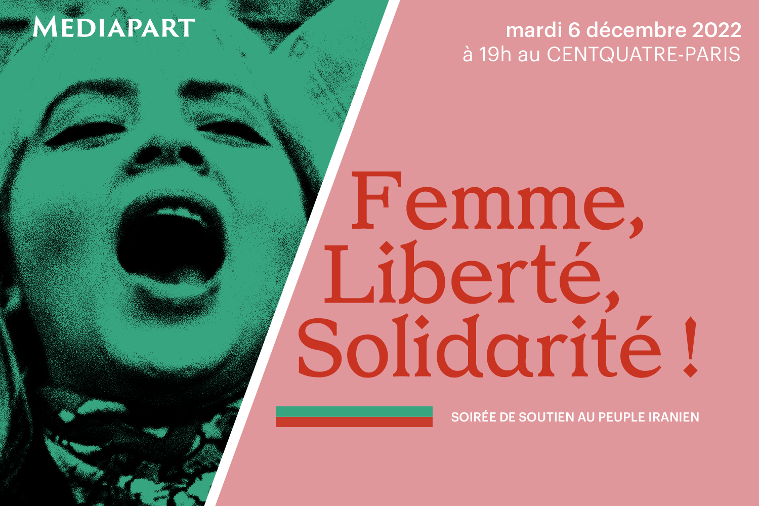 Mediapart organise, mardi 6 décembre, une grande soirée publique de soutien au peuple iranien de 19h à 22h au CENTQUATRE-PARIS, 5 rue Curial dans le 19e arrondissement de Paris.